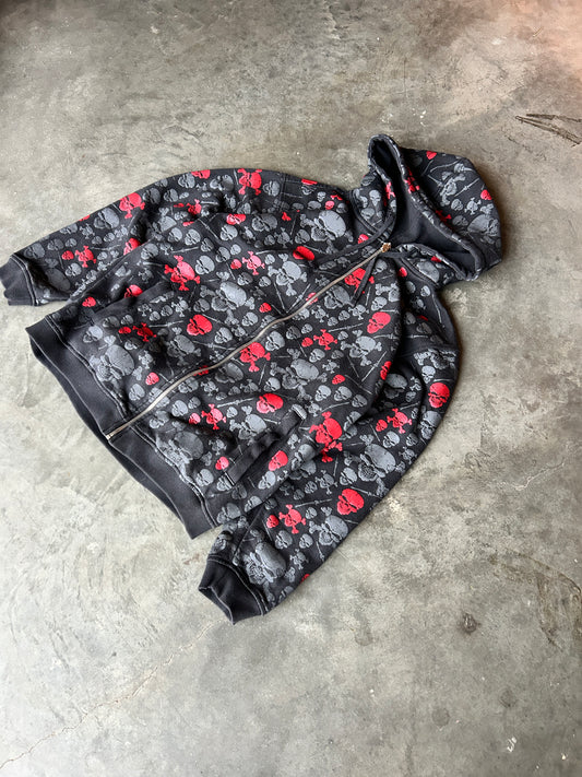 Y2K Skull Barb Wire AOP Zip Hoodie (M)
