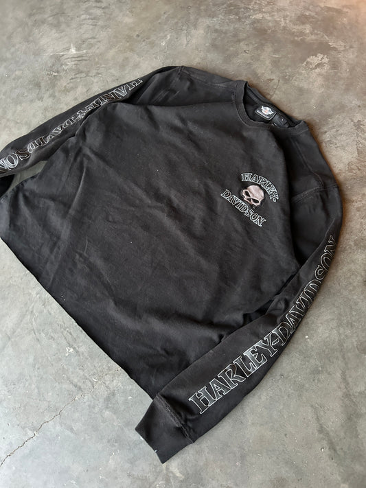 Black Cropped Harley Sleeve Spellout LS Shirt (L)