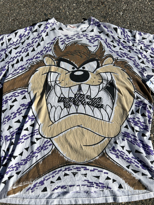 Vintage 1993 Taz Purple All Over Print Tee (XL)