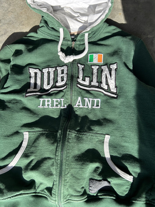 Vintage Dublin Ireland Forest Green Zip Hoodie (L)