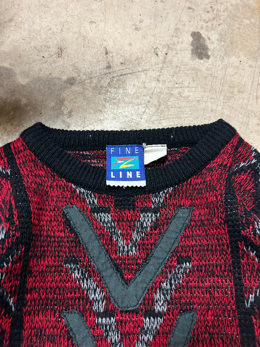 Vintage Fine Line Red Knit Sweater (L)