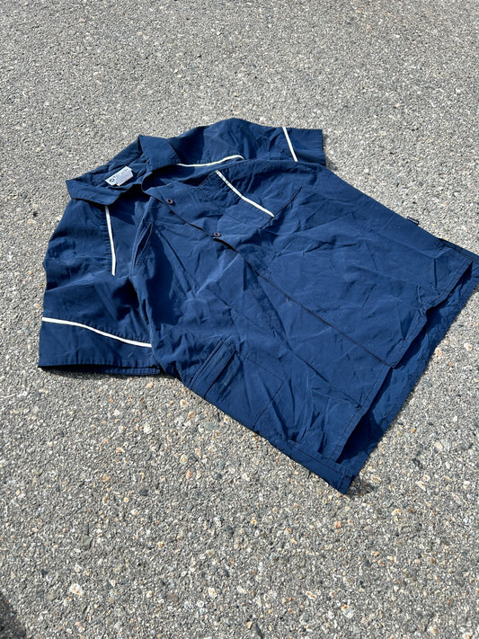 Vintage Kitchen Orange Navy Blue Button Up (L)