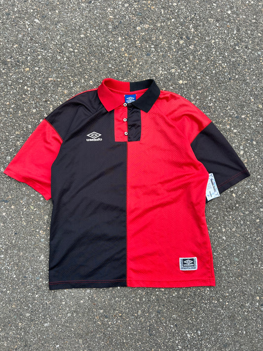 Vintage Red Umbro Split Collared Jersey (L)