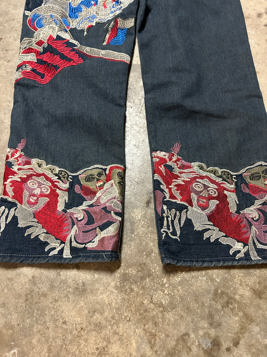 Baggy Embroidered Double Knee Jeans (32x32)