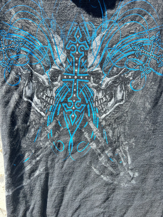 Y2K MMA Elite Blue Skulls Graphic Tee (L)