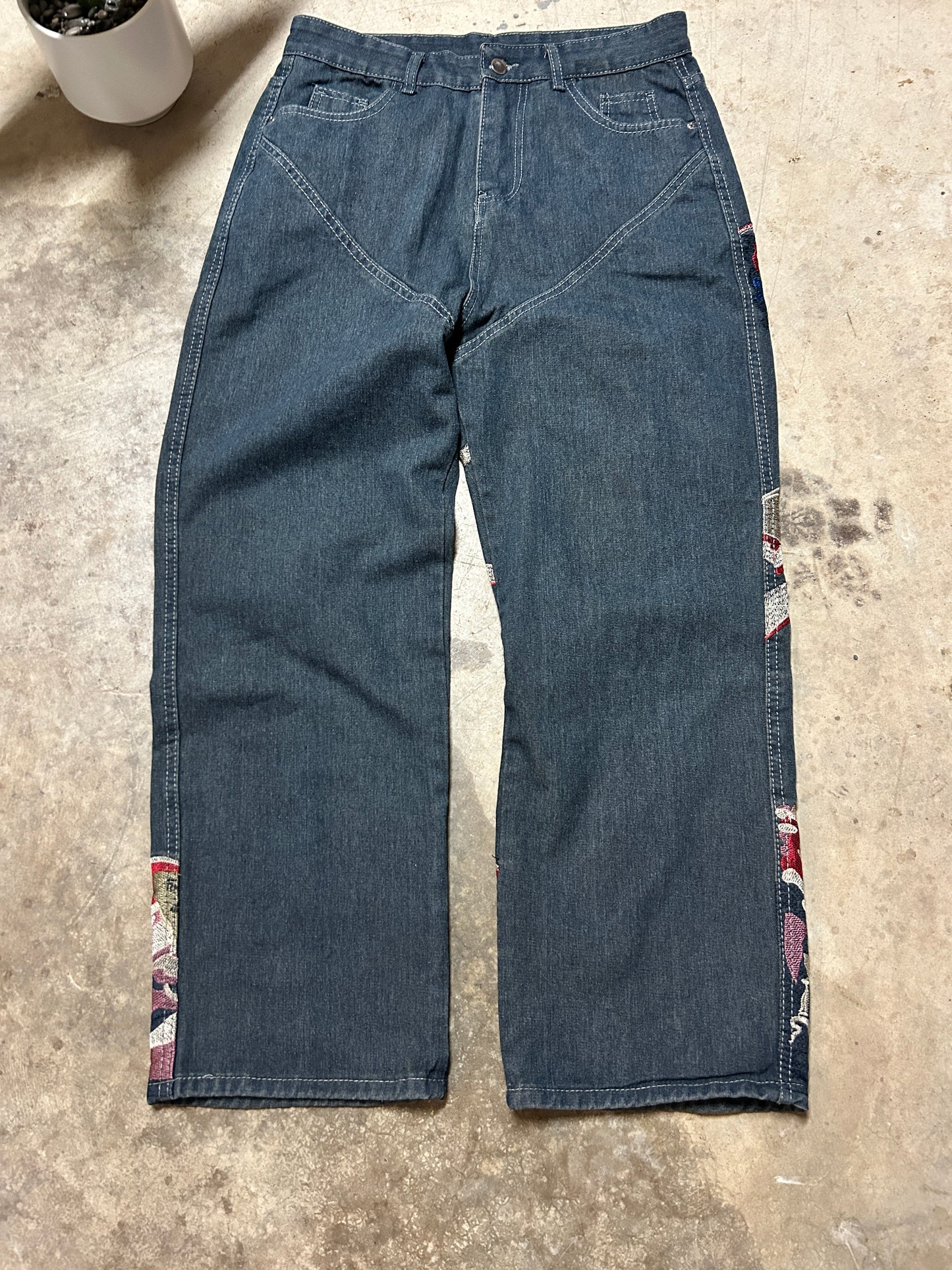 Baggy Embroidered Double Knee Jeans (32x32)