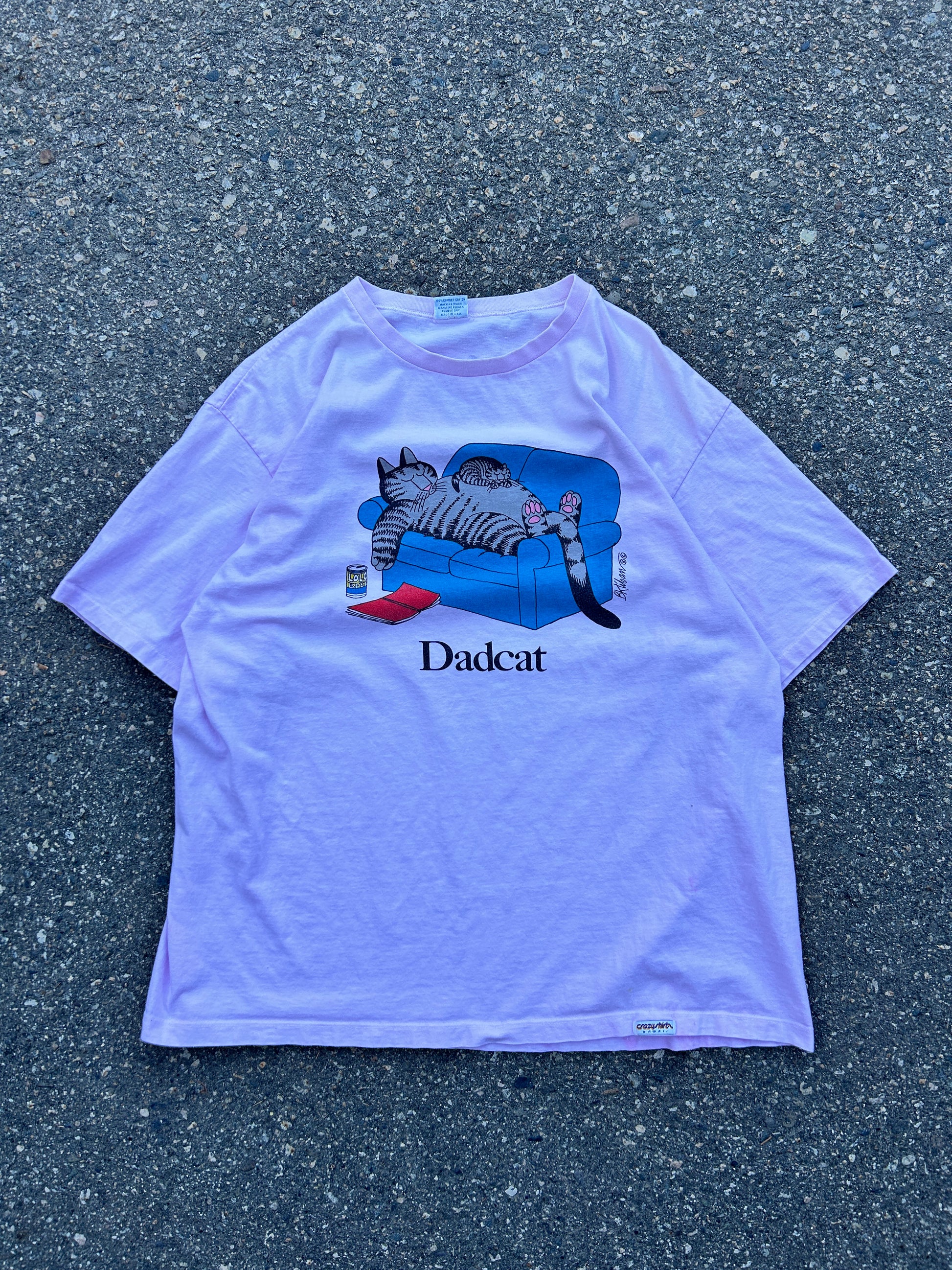 Vintage 90’s Single Stitch Pink Dadcat Tee (XL)