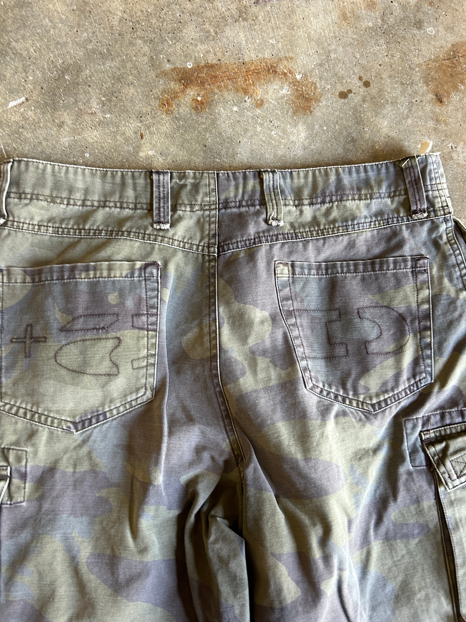 Y2K Antidote Pocket Stitch Camo Shorts (32W)