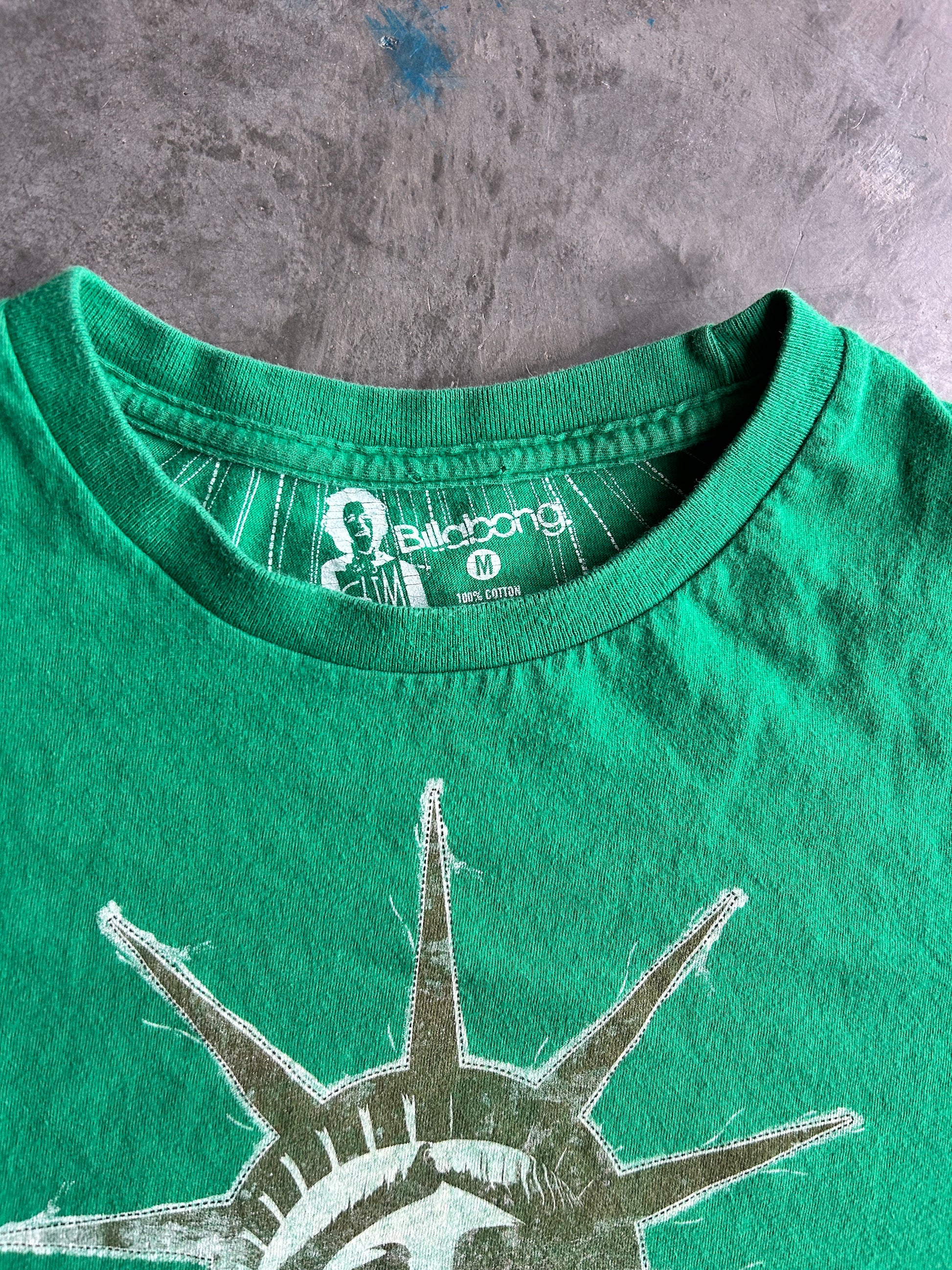 Y2K Billabong Green Statue of Liberty Tee (M)