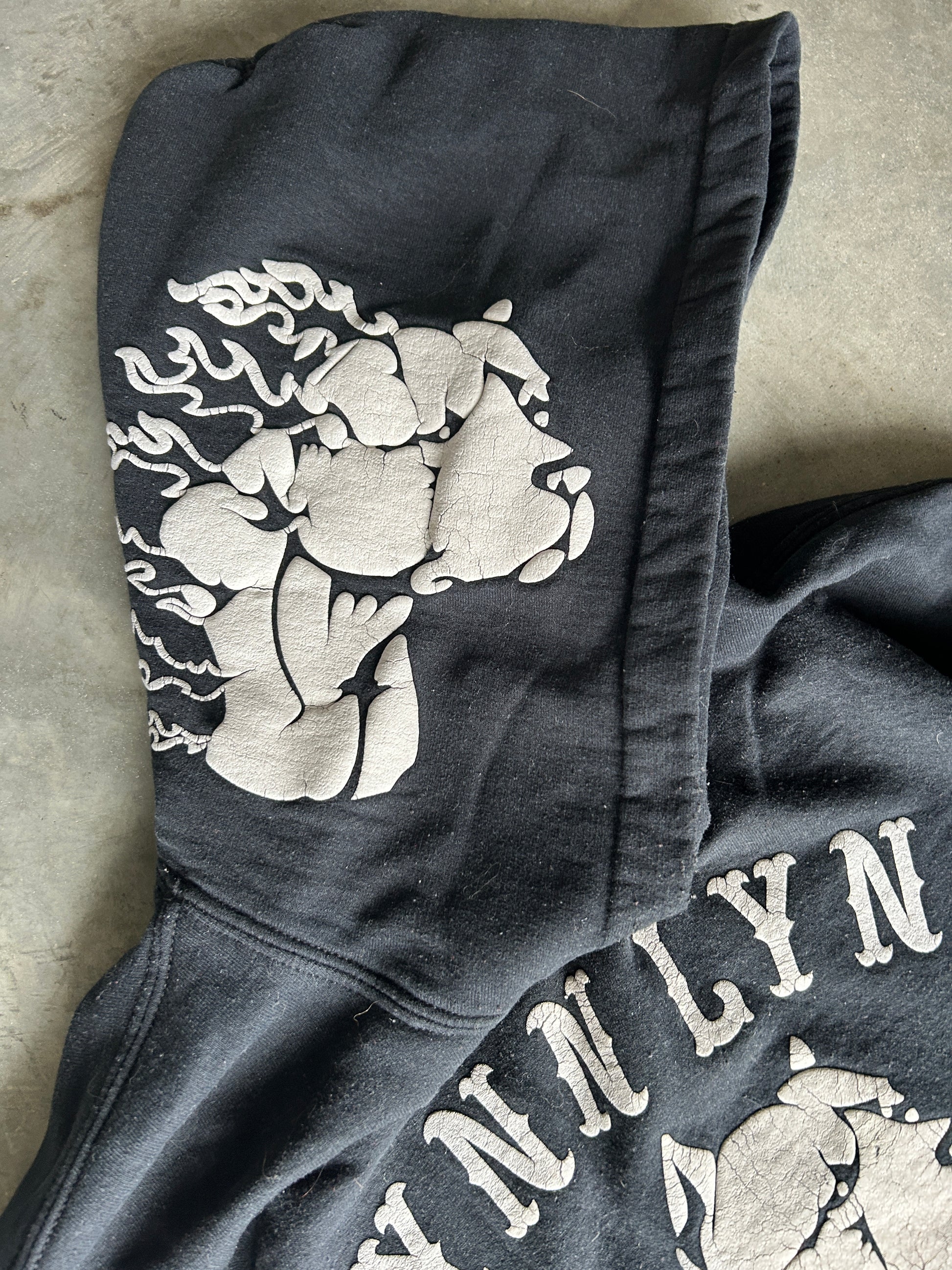 sick puff print hits all over the hoodie
