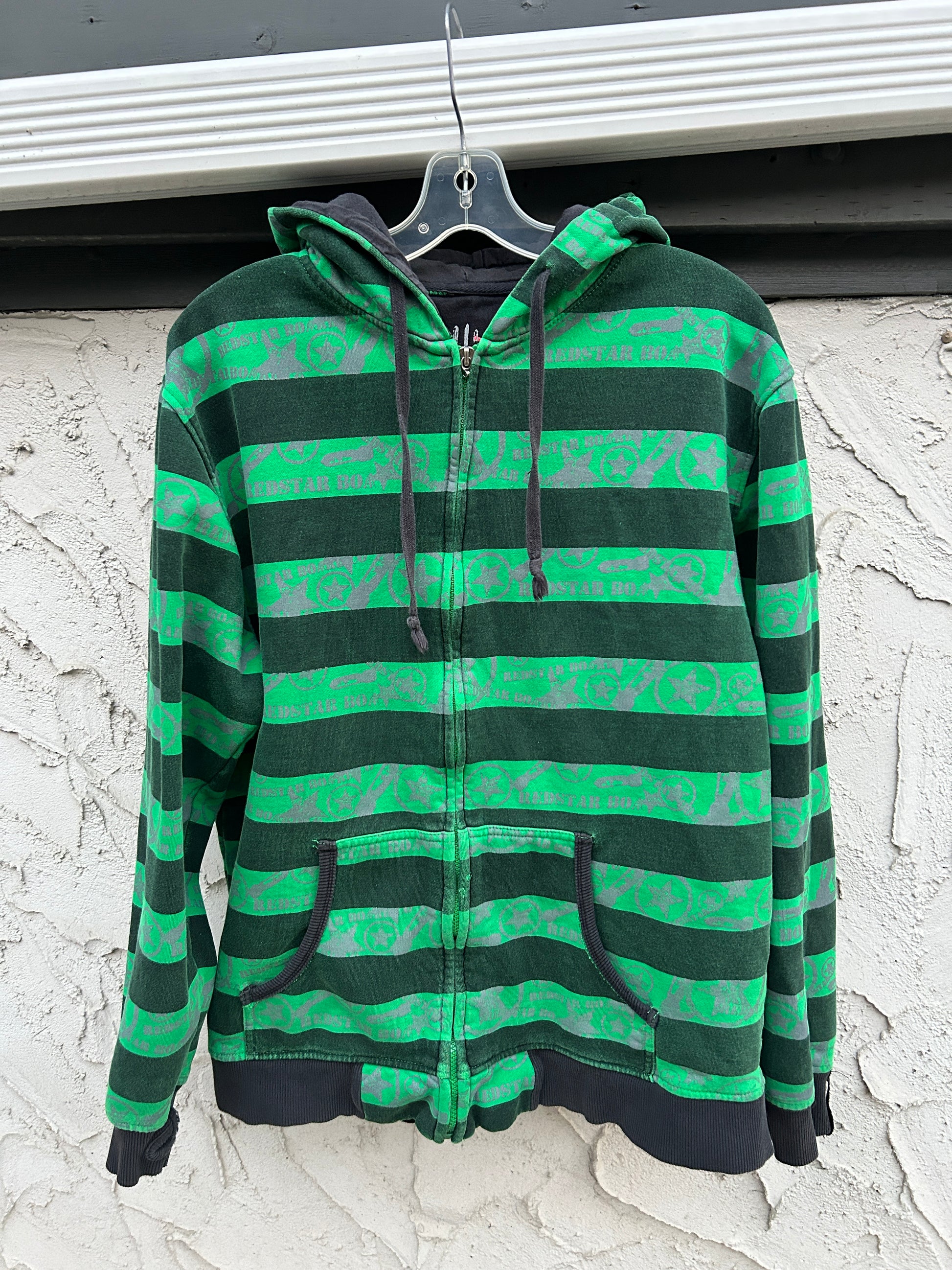 Y2K RedStar Green Striped Zip Hoodie (XL)
